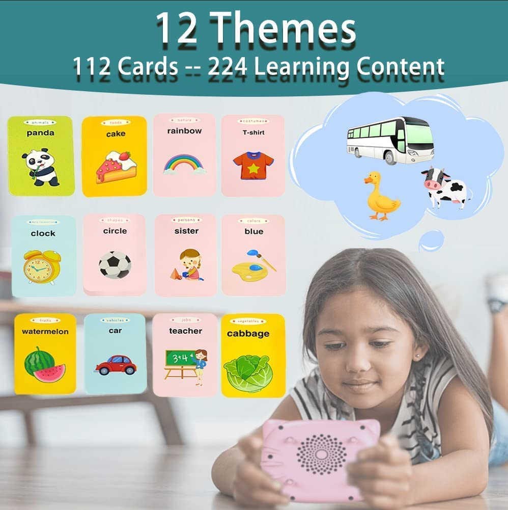 Flashcards are made with heavyweight cards, smooth edges, colorful paint. Safety for children. Size of the flash card reader device is 4.21x3.54x0.83 inch, perfect hand-held size for toddlers. Small size and easy to carry. No need for WIFI, clear spoken language with intuitive and interesting pictures, easy to learn anytime, anywhere The machine is made of ABS material, which is durable and smooth to prevent breaking.